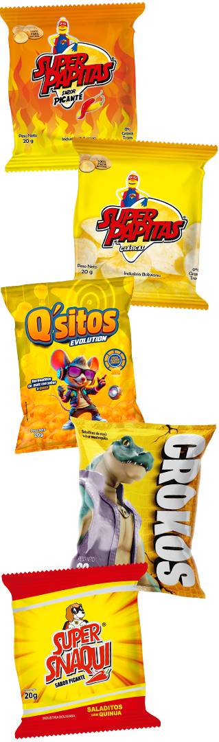 • Extruidos: Q'sitos de 20g, Crokos de 20g y/o Super Snaqui de 20g (1 letra y 8 números)