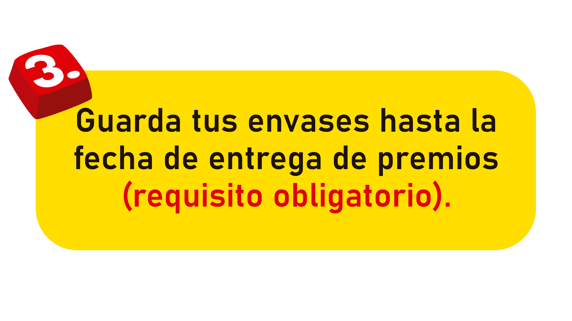 con su cedula de identidad y los 3 envases para poder reclamar su premio.